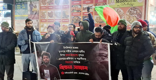 ইনকিলাব মঞ্চের মুখপাত্র ও ঢাকা-৮ আসনের সম্ভাব্য স্বতন্ত্র প্রার্থী শরিফ ওসমান হাদি’র উপর গুলি বর্ষণের প্রতিবাদে নিউইয়র্কের জ্যাকসন হাইটসে প্রতিবাদ সমাবেশ করেছেন প্রবাসী বাংলাদেশী সহ জুলাই যোদ্ধারা। গত ১২ ডিসেম্বর শুক্রবার সন্ধ্যায় ডাইভারসিটি প্লাজায় এই সমাবেশ অনুষ্ঠিত হয়।